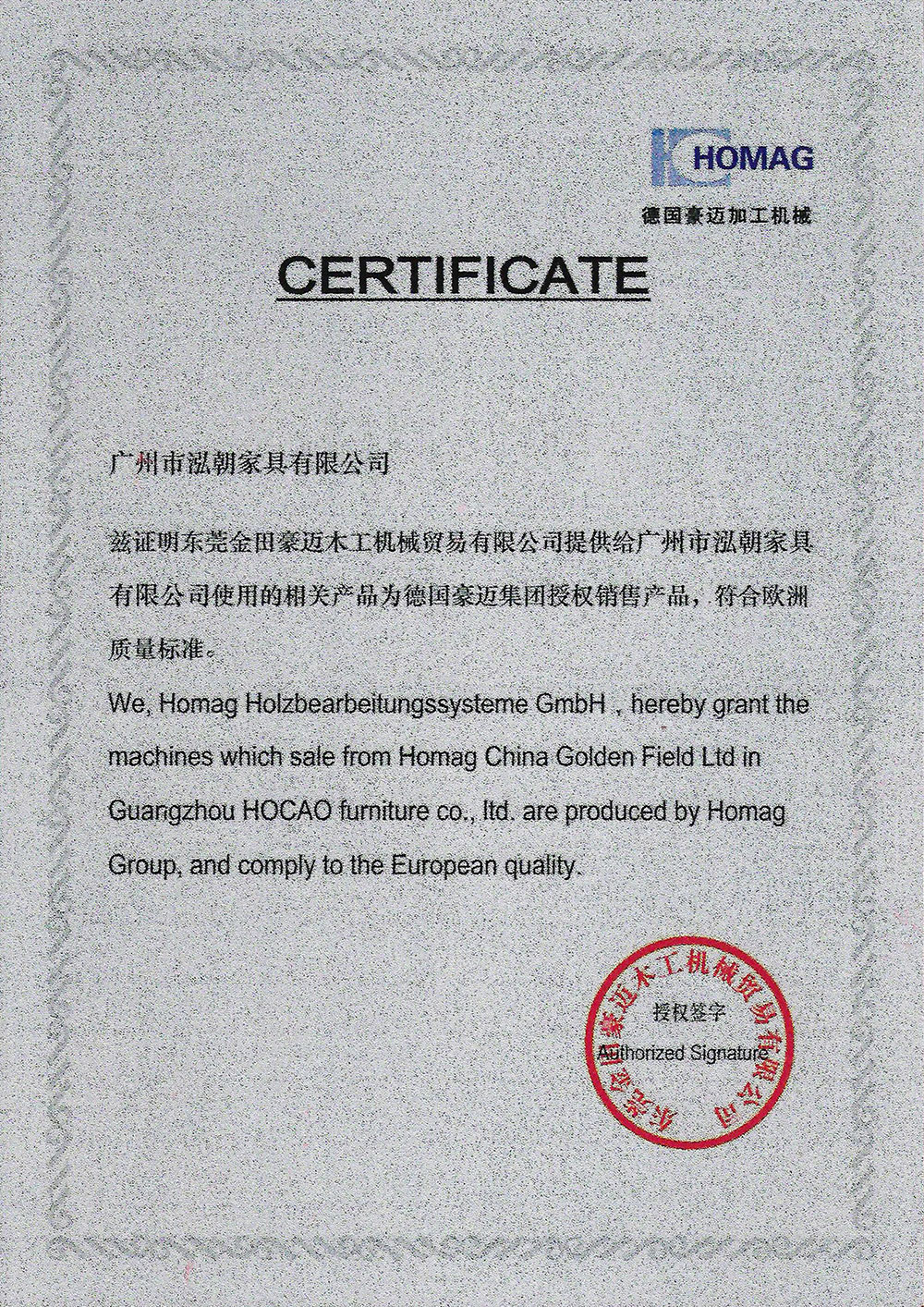香港泓朝集團(tuán)旗下品牌“HOCAO泓朝貴族”,是一家集研發(fā)、生產(chǎn)、銷(xiāo)售為一體的專(zhuān)業(yè)定制衣柜企業(yè)??偛吭O(shè)在廣州,生產(chǎn)基地位于風(fēng)景秀麗的廣州市白云區(qū)帽峰山腳下,擁有60000多平米花園式現(xiàn)代化廠房,專(zhuān)業(yè)定制:衣柜、衣帽間、書(shū)柜、酒柜、電視柜、陽(yáng)臺(tái)柜、飄窗柜、榻榻米等產(chǎn)品以及全屋配套家具(臥房、書(shū)房、客廳、餐廳等),公司采用多條世界最先進(jìn)的德國(guó)豪邁全自動(dòng)生產(chǎn)設(shè)備,豪邁180數(shù)控開(kāi)料鋸、310帶跟蹤數(shù)控封邊機(jī)、160數(shù)控加工中心等生產(chǎn)線(xiàn),ERP大數(shù)據(jù)管理系統(tǒng),采用行業(yè)最先進(jìn)圓方生產(chǎn)軟件系統(tǒng)和圓方店面終端設(shè)計(jì)軟件,實(shí)現(xiàn)了終端銷(xiāo)售與工廠生產(chǎn)的無(wú)縫對(duì)接,大大提高了生產(chǎn)效率和產(chǎn)品質(zhì)量的穩(wěn)定性。一流的技術(shù)人員,龐大的營(yíng)銷(xiāo)團(tuán)隊(duì),無(wú)論在企業(yè)規(guī)模,還是軟、硬件設(shè)施上都堪稱(chēng)國(guó)際化現(xiàn)代家居企業(yè)。