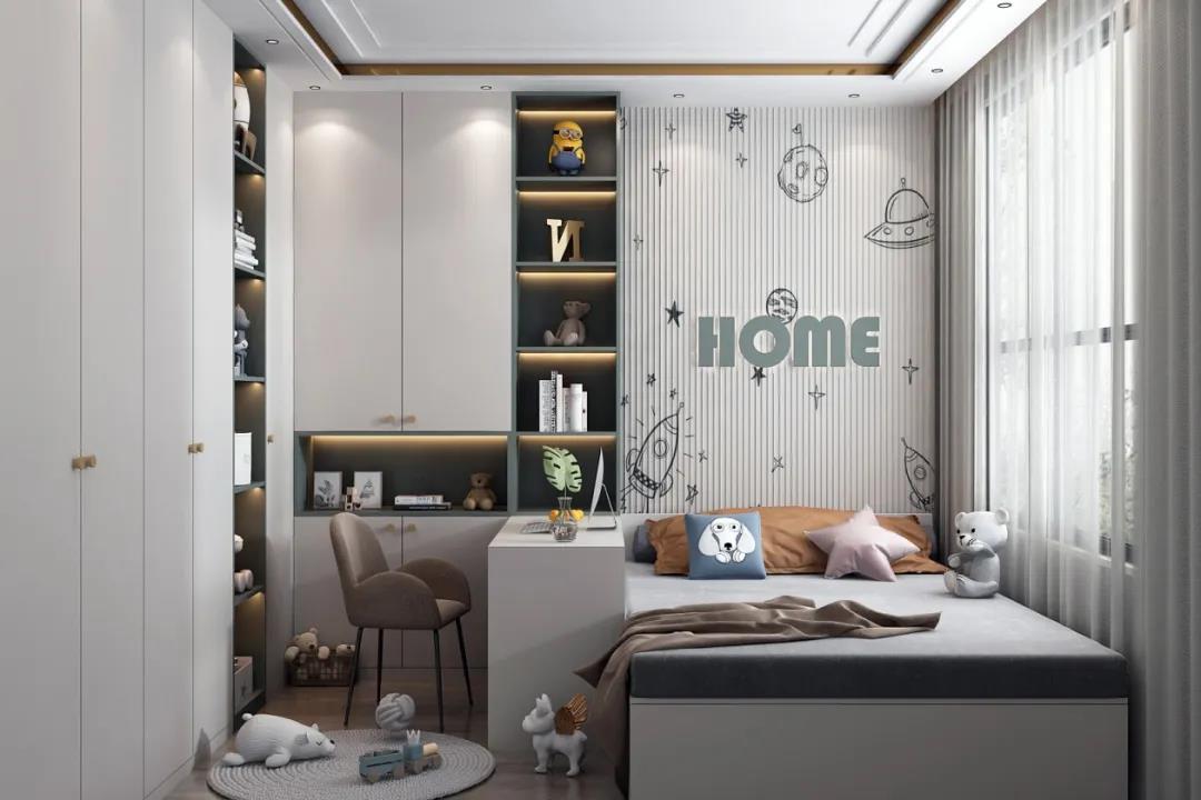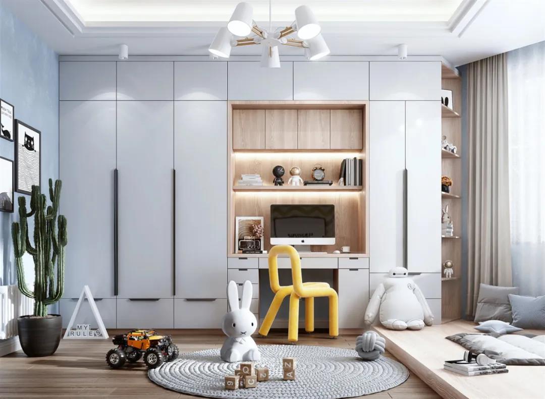 收納。這個要畫重點。必須重點考慮,玩具、衣物、書籍要做到分類收納、就近收納通過對空間和功能區(qū)的巧妙合并,用細節(jié)展示顏值和實用性,孩子們可以慢慢學會收納,養(yǎng)成歸整物品的好習慣,打造出一個屬于自己的有趣空間。我們在兒童房裝修上既要保證材料的環(huán)保性,更要兼顧孩子的舒適性,保證收納充足,如何生活都不會亂。